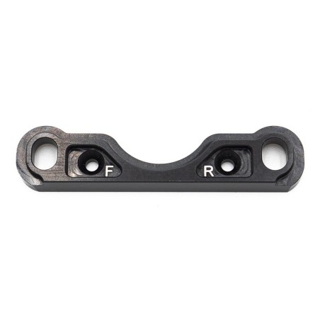 Cette cale permet de renforcer la fixation et le guidage des axes inferieurs des triangles avant. Cette pièce qui a été conçue en France est fabriquée avec notre centre d’usinage dans nos locaux de Toulouse avec de l’aluminium 7075 en provenance d’Europe Un post-traitement par anodisation permet de renforcer et de colorer la surface de cette pièce. Enfin, nous apposons un design à l’aide de notre machine de gravure laser sur les surfaces visibles.